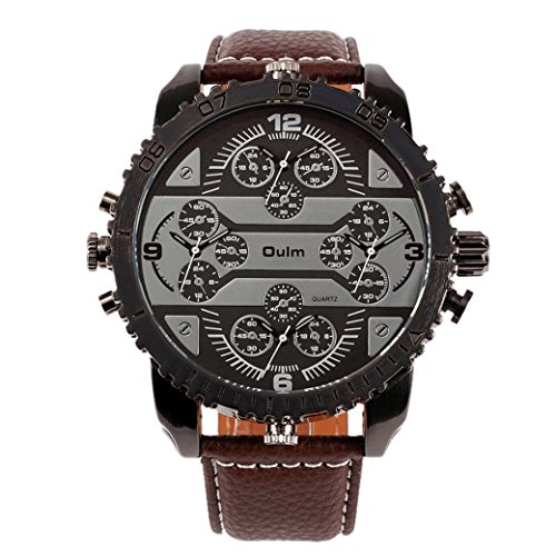 OULM Montre 2015 Quatre Fuseaux horaires Mouvement Quartz Travail Cadran Rond Bracelet en Cuir Sports Armée Homme Etanche Voyage Voyageur pour Homme Marron Cela peut éventuellement s’agir de rechange montres votre choix