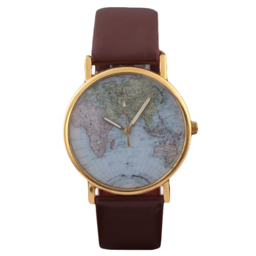 ... carte du monde montre-bracelet PU bande montres à ... Brown carte du monde montre-bracelet PU bande ... Unisexe Cadran Analogique avec Carte du Monde par ...