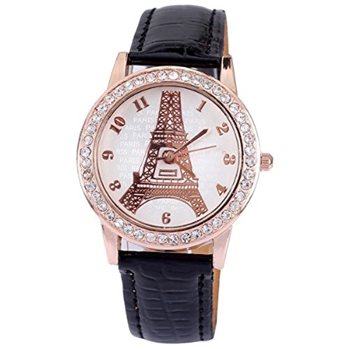 Mode Paris Tour Eiffel regarder les femmes PU strass cuir Montre nombre analogique pour filles dames Cette puissance éventuellement s’agir de rechange montres votre choix