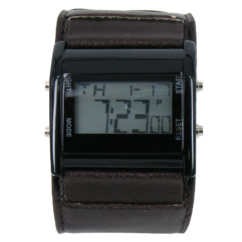 Prince-Londres NY style rétro montre à affichage numérique avec chronomètre et large de couleur PU bracelet en cuir - Marron Cette puissance éventuellement s’agir de rechange montres votre choix