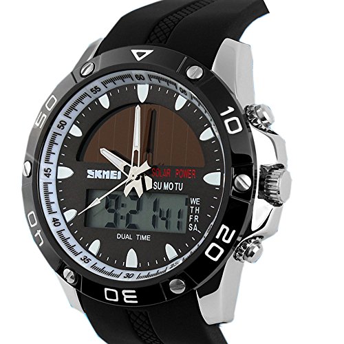 sport double fuseau horaire calandre étanche lumineuse l'montre à bracelet solaire de quartz de l'énergie pour les hommes/garçons-argent lunette Cette puissance éventuellement s’agir de rechange montres votre choix