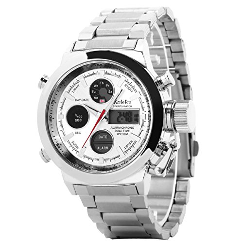 UQ Montre-Homme-A12 D0010-Multifonctionnel-Analogique-Digital-Cadran-Blanc-Bracelet acier Argent Cette puissance éventuellement s’agir de rechange montres votre choix