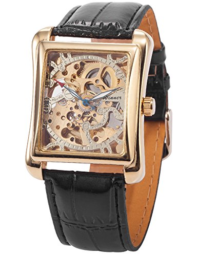 AMPM24 Montre Mécanique Automatique Squelette Carre Sportive Bracelet Cuir Homme Or PMW079 Ce mai éventuellement s’agir de rechange montres votre choix