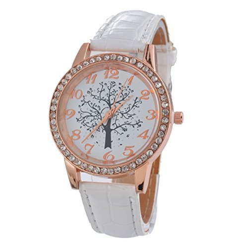 Souarts Femme Montre Bracelet en Pu Cuir Strass Motif Arbre de ... Product Title: Souarts Femme Montre Bracelet en Pu Cuir Strass Motif Arbre de la Vie Blanc; Brand ...
